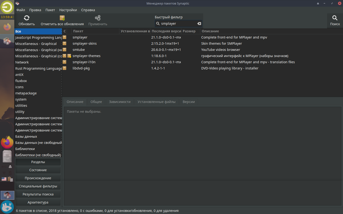 On MX Linux, most of the apps you might need in the early days are already pre-installed. To install additional software, useSynaptic Package Manager. You can find a shortcut to launch the manager in the sectionThe system.