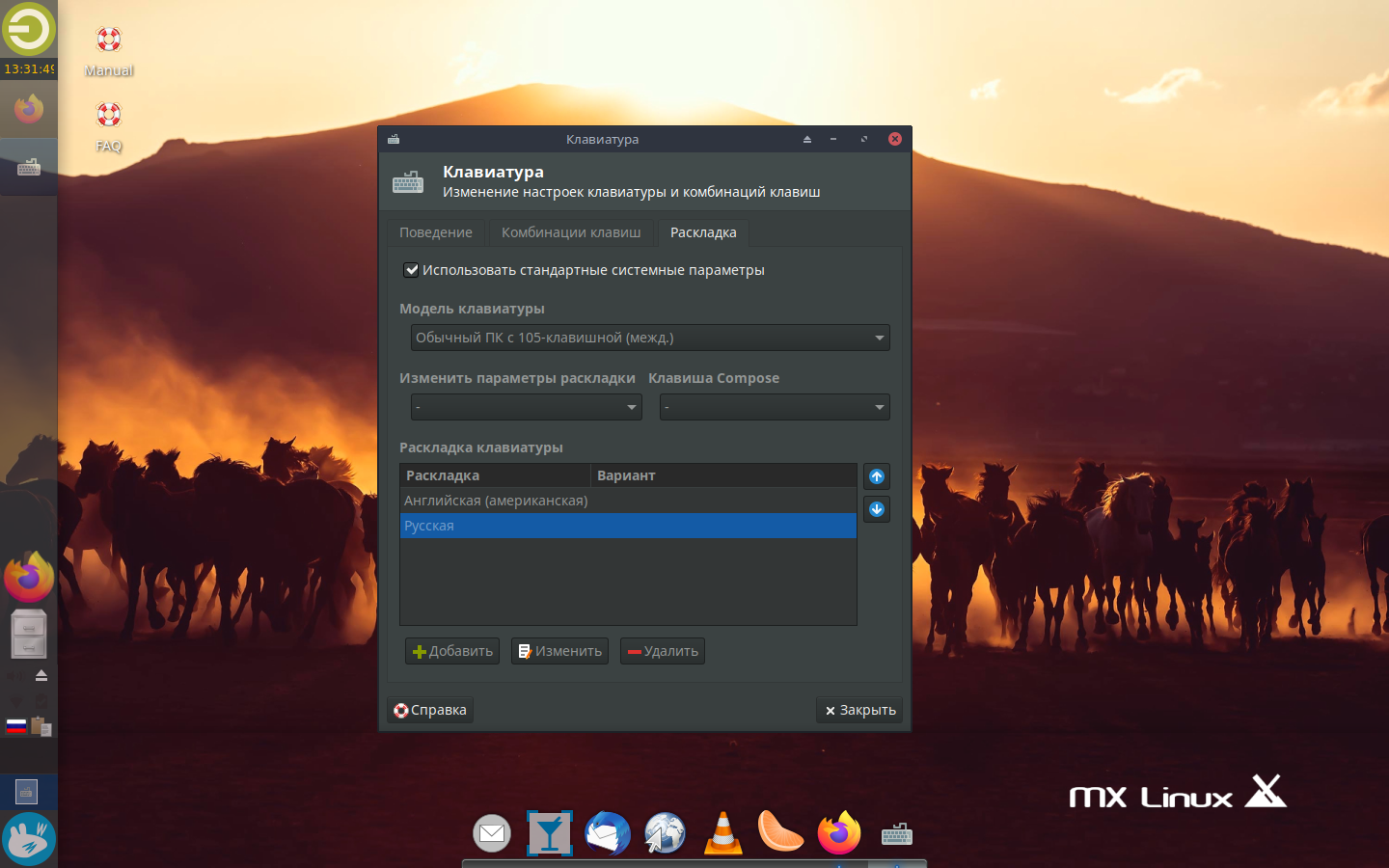 Let’s look at how the MX Linux keyboard layout is configured. You could add a Russian keyboard layout and keyboard shortcuts for switching languages during the installation of MX Linux on the hard disk. However, if you haven’t, now is the time.
