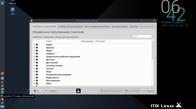In this article, we will look at how to configure MX Linux after installation. The distribution looks quite modern. And the low hardware requirements, the presence of many pre-installed applications and a well-thought-out interface make MX Linux one of the best Debian distributions.