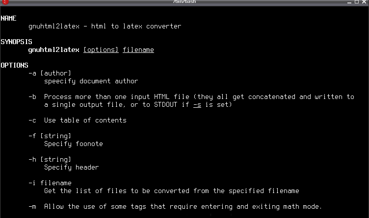 gnuhtml2latex is a small Perl command-line utility to convert HTML files to LaTeX documents (it takes a list of files *.html as arguments and creates *.tex file). Utility is written as a full analogue of the utility html2latex (in 2000 stopped development).