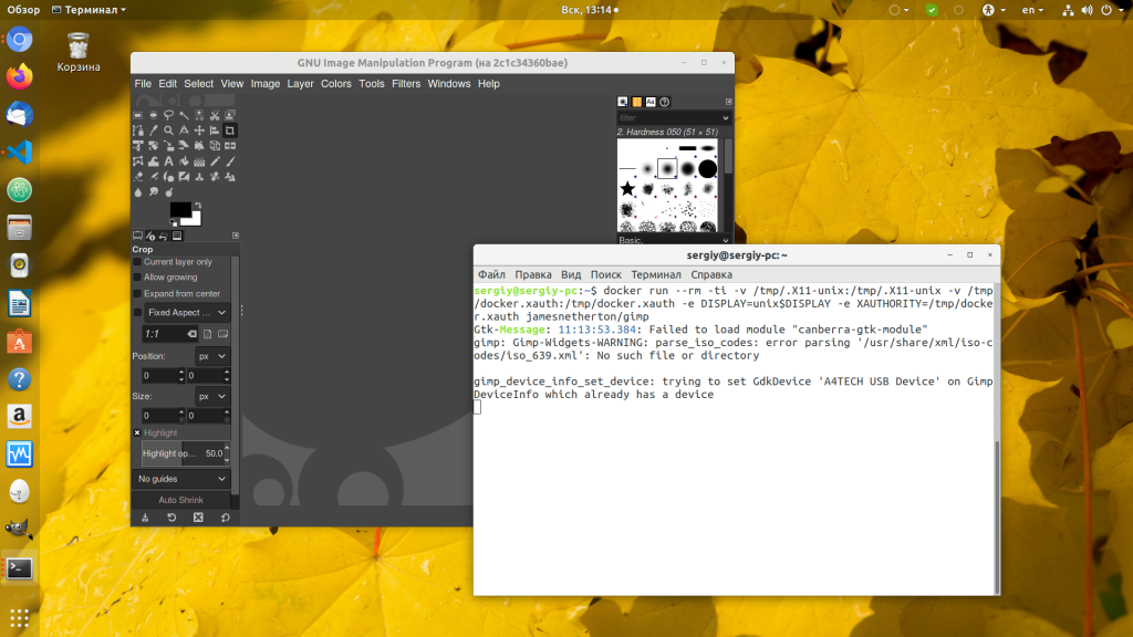 You are now ready to run the docker container with the gui. In the container we will Trimontium this file, the UNIX socket to the X server and pass the variables that will help the apps in the container this is all to find. For example start gimp: