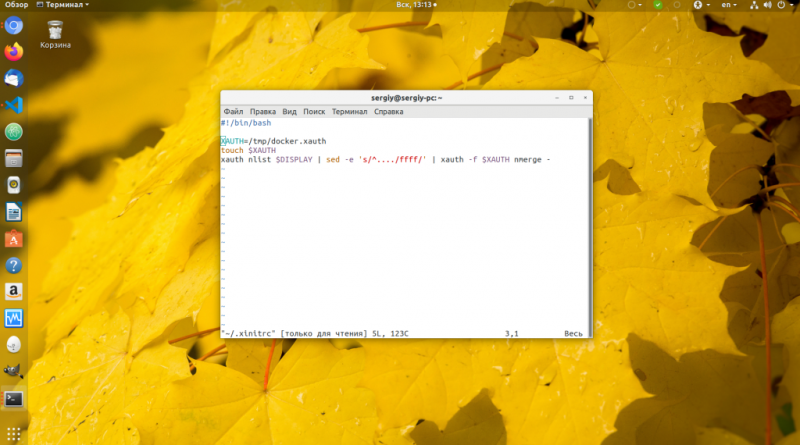 The first thing we need to do a little change for the host, otherwise the host will not allow the container application to connect to the X server. Create a file /tmp/docker.xauth:
