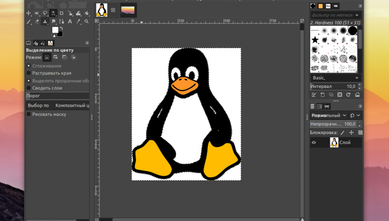 Let’s say there is such a Linux logo on a uniform background. You need to cut out the logo itself and paste it into another image: