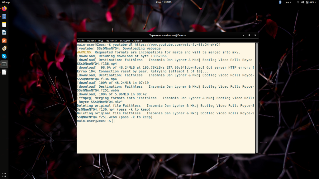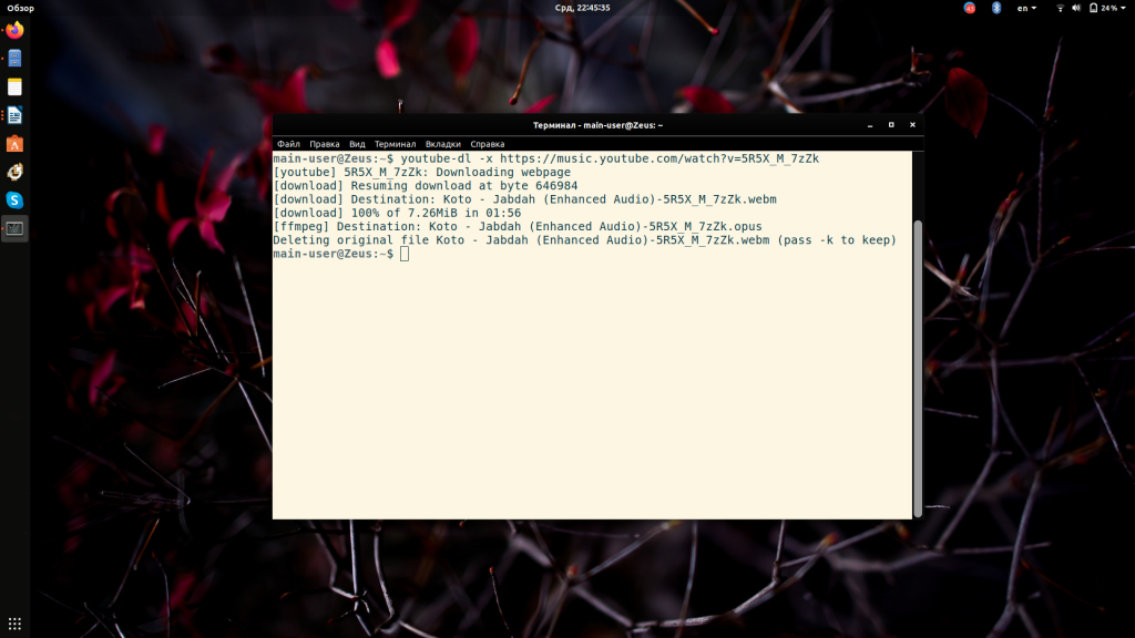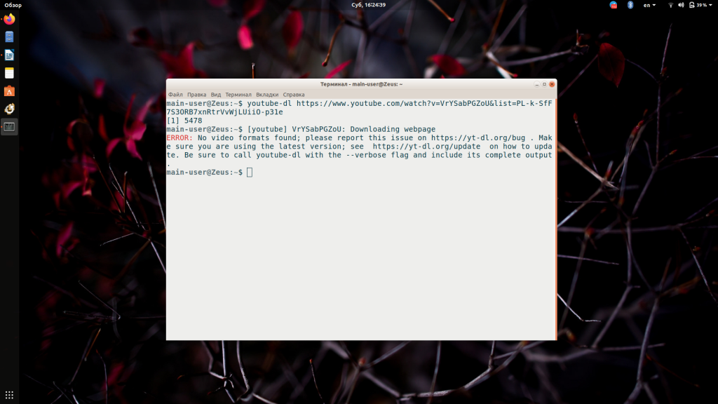 youtube-dl-o 'another video from YouTube which after 5 minutes will go in the basket' https://www.youtube.com/watch?v=dkmjCAjAQug