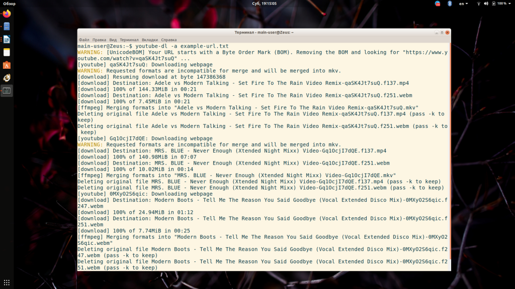 youtube-dl URL-adress-1 URL-adress-2 URL-adress-3