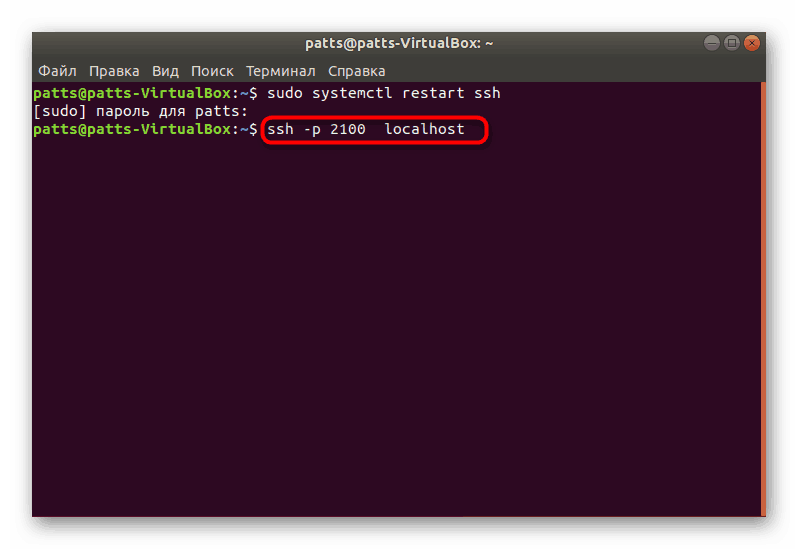 • After changing the active port, it is necessary to fix in the client. This is done by specifying ssh -p 2100 localhost, where 2100 — the number replaced by the port.