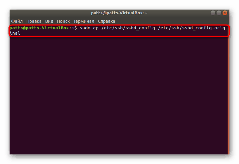 • Priority save a backup copy of the configuration file, in which case refer to it or to reset the SSH. In the console paste the command sudo cp /etc/ssh/sshd_config /etc/ssh/sshd_config.original.