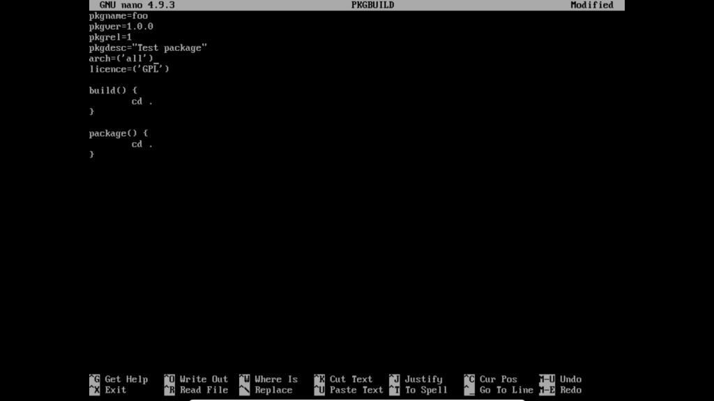nano PKGBUILD
