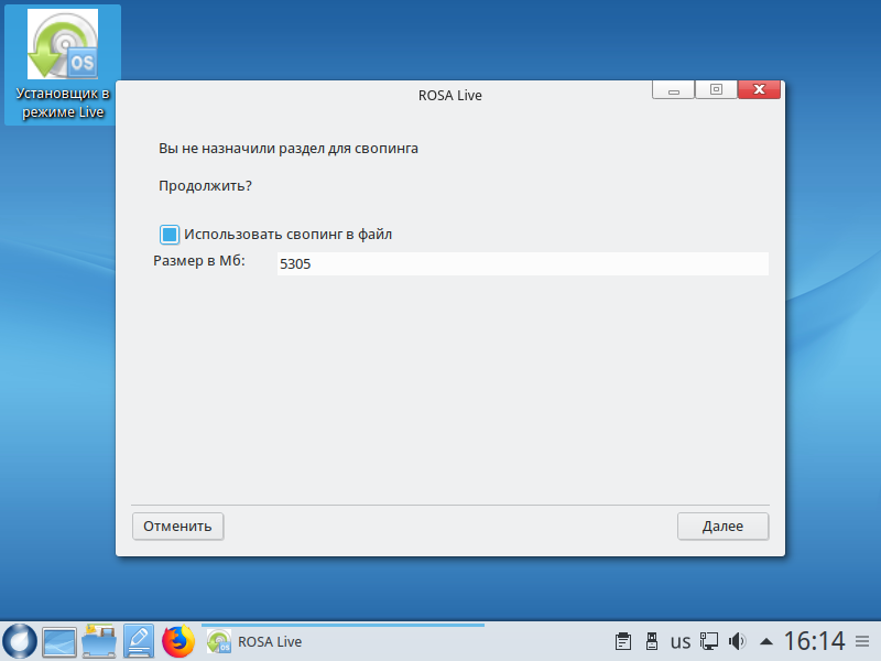 If you have not created the swap partition while partitioning the disk, the utility prompts you to create a swap file. Its size should be at least the size of RAM, if you want to use sleep mode or hibernation.