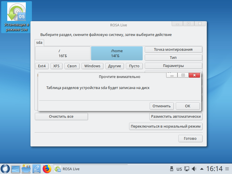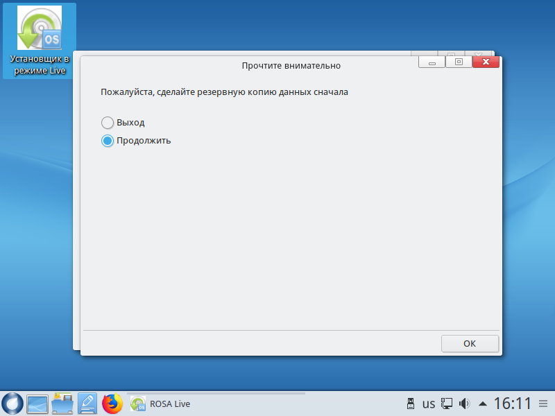 To install a Linux distribution on a computer, it is sufficient to only create the root partition. But for ease of use I recommend also to create a home partition. For more detail about the breakdown of the disc read in this article. After choosing a method of marking will be prompted to make a backup copy of the data. Before you continue, click OK: