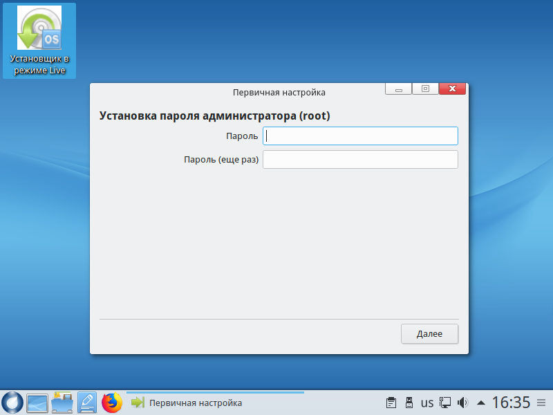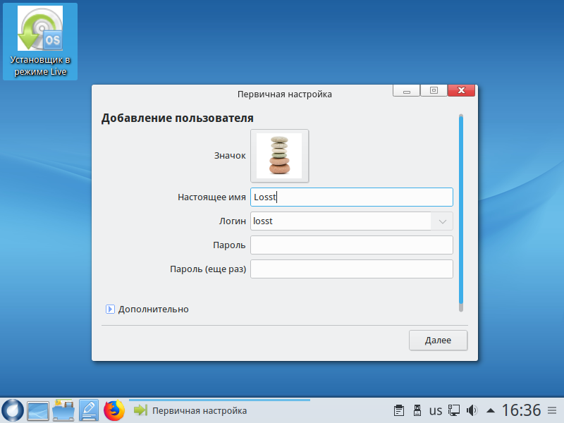 Only after all these settings, you will be in a Live environment. Here you can see what is the system, run programs and so on. To start the installation, double-click on the icon the Installer in Live mode: