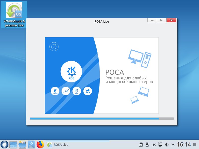 Rosa Linux is a Russian distribution based on Mandriva and developed by NTC it ROSA. The distribution has a version for server and computer. In addition to the free version is certified in FSTEC and Ministry of defense of the Russian Federation distributions. As for desktop environment, officially released build for such environments, like KDE 4, and Plasma 5, LXQT, XFCE.