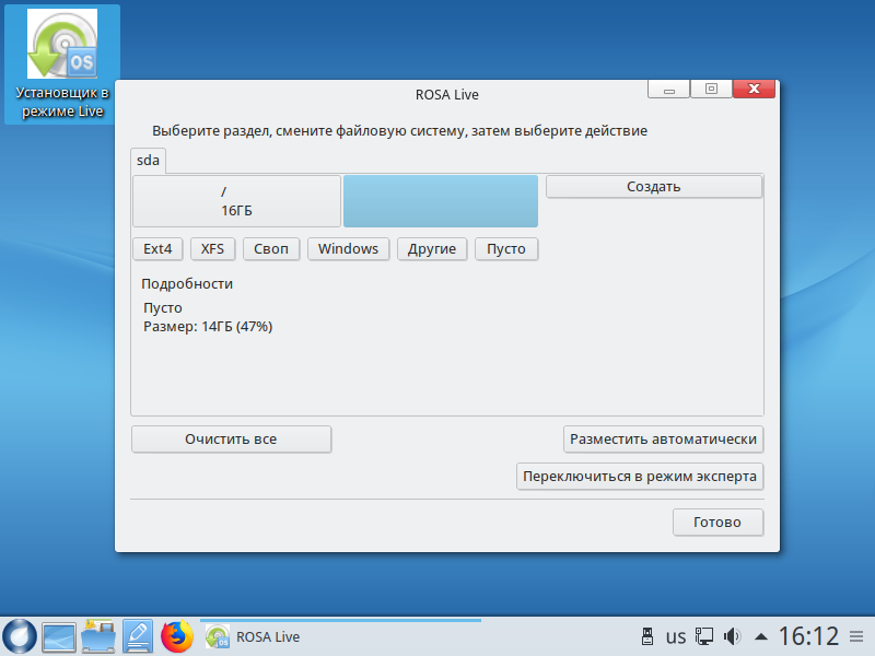To write Rosa on the stick, the developers recommend to use the utility RosaImageWriter. You can download it on the page of the editor’s choice of the distribution.
