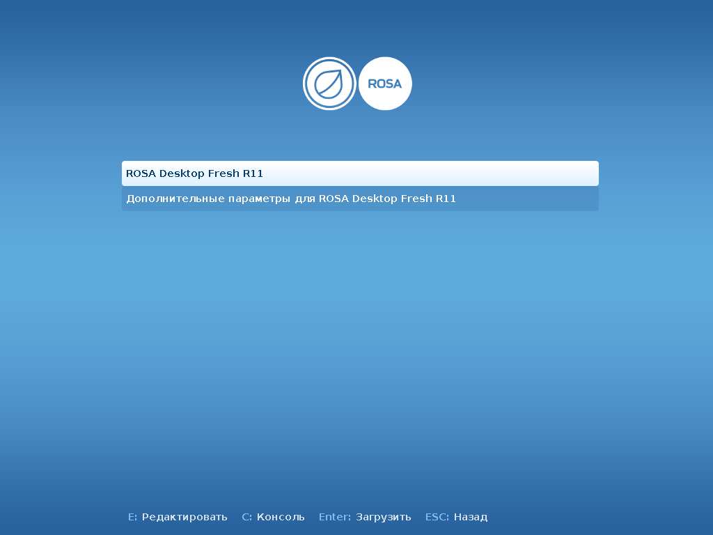 Already in the main menu the image, you can select Install ROSA Desktop Fresh R11 and go directly to installing. But I do not recommend to do so. Better to boot from a LiveCD image, and then start the installation. So you will be easier to fix bugs if they arise. Therefore, select Start ROSA…