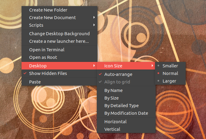 - a new desktop icon mode is available: desktop grid. This new mode allows changing the icon size (smaller, normal, larger) as well as the icon orientation (horizontal or vertical), sort by name, date, type or size, auto-arrange or manual layout, and align to grid;