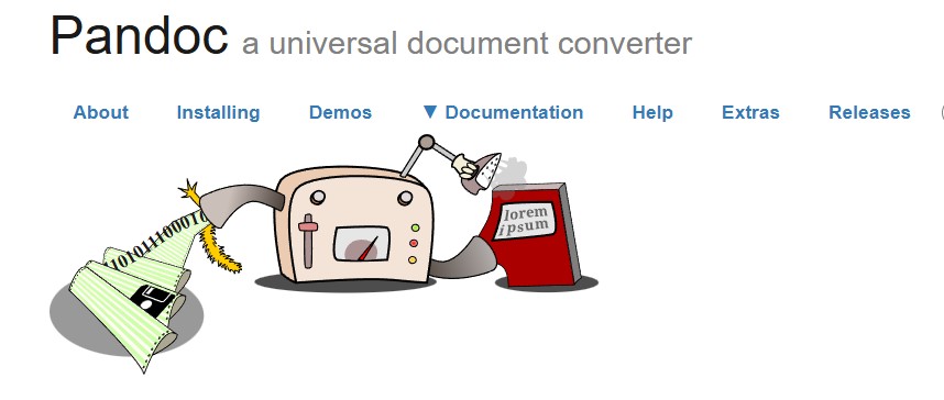 pandoc — a universal Haskell command-line utility for working with text files of numerous formats, the “Swiss army knife” for working with text formats.