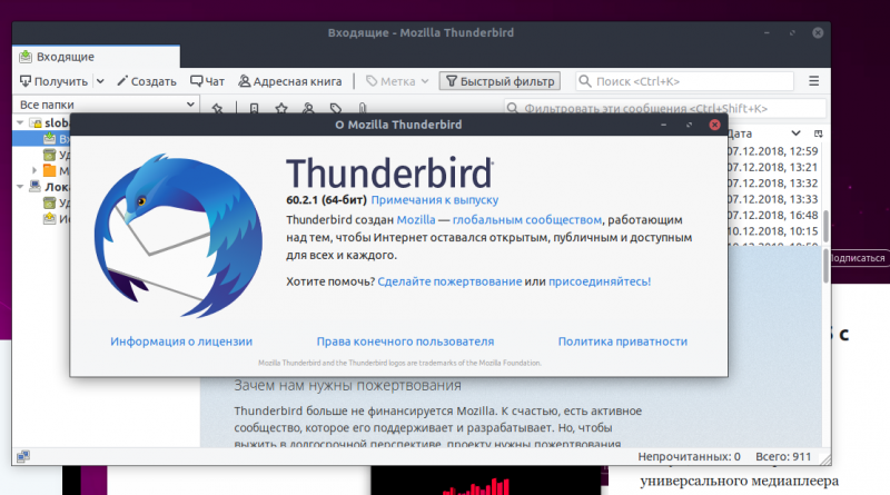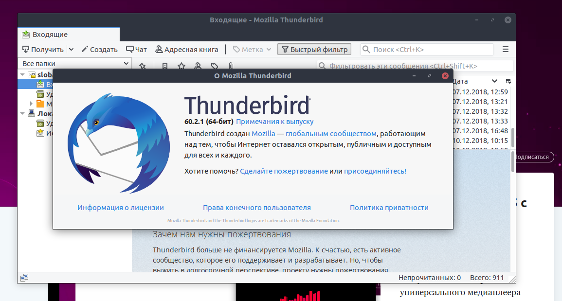 The release of Thunderbird 60 last summer brought improved user interface “Photon”, some significant bug fixes and improvements, as well as a new logo.