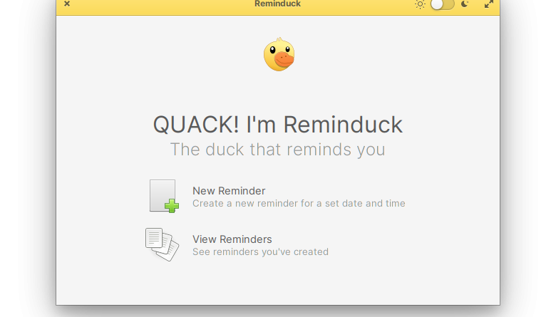 Download Reminduck and more from Elementary AppCenter, an open, paid app store for indie developers. Every open source app is reviewed and curated by the Elementary team to ensure respect and safety when used.