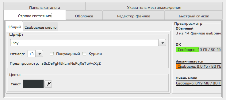 User interface trolCommander as muCommander partially customizable, supports changing the skins directory and files with the ability to edit them (you can choose the font and color).