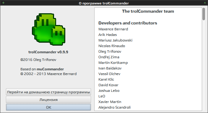 trolCommander compared to the original muCommander received many smaller improvements, bug fixed, added high resolution icons, improved performance and reduced memory consumption. The control is performed using commands, mouse and/or keyboard shortcuts (fully customizable).